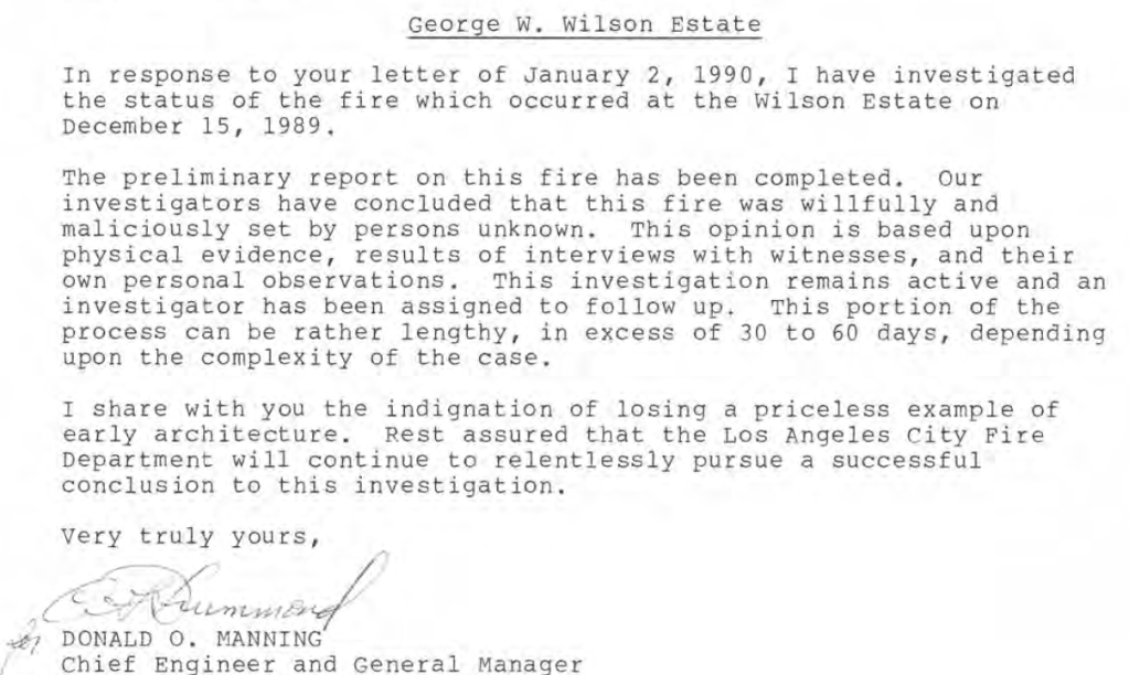 Tragically, under suspicious circumstances an arson fire destroyed the Wilson Estate on December 14th, 1989. Only the Train and Williams porch and arroyo stone wall remained.