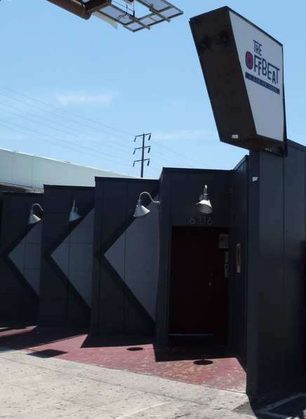 “Excellent example of Googie commercial architecture in Garvanza, featuring the unusual use of a windowless “”folded plate”” primary facade wall.” from http://www.historicplacesla.org/reports/65400890-ea3c-4f61-8b40-bd96cbdf410c